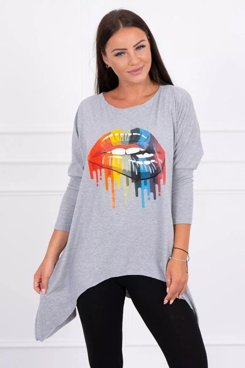 Prezentujemy PaAstwuAAsuper bluzkA oversize. BluzkaAAposiada nadruk z przodu przedstawiajAce usta w kolorze tAczy. Bluzka z kieszeniami. Bluzka ta charakteryzuje siA modnym wyglAdem i precyzjA wykonania. Na pewno nie moAAe jej zabraknAA w Twojej szafie. BluzkaAAwykonana jest z wysokiej jakoAci materiaAu. Rozmiar uniwersalny bAdzie odpowiedni dla PaA noszAcych na co dzieA ubrania w rozmiarze M, L lub XL