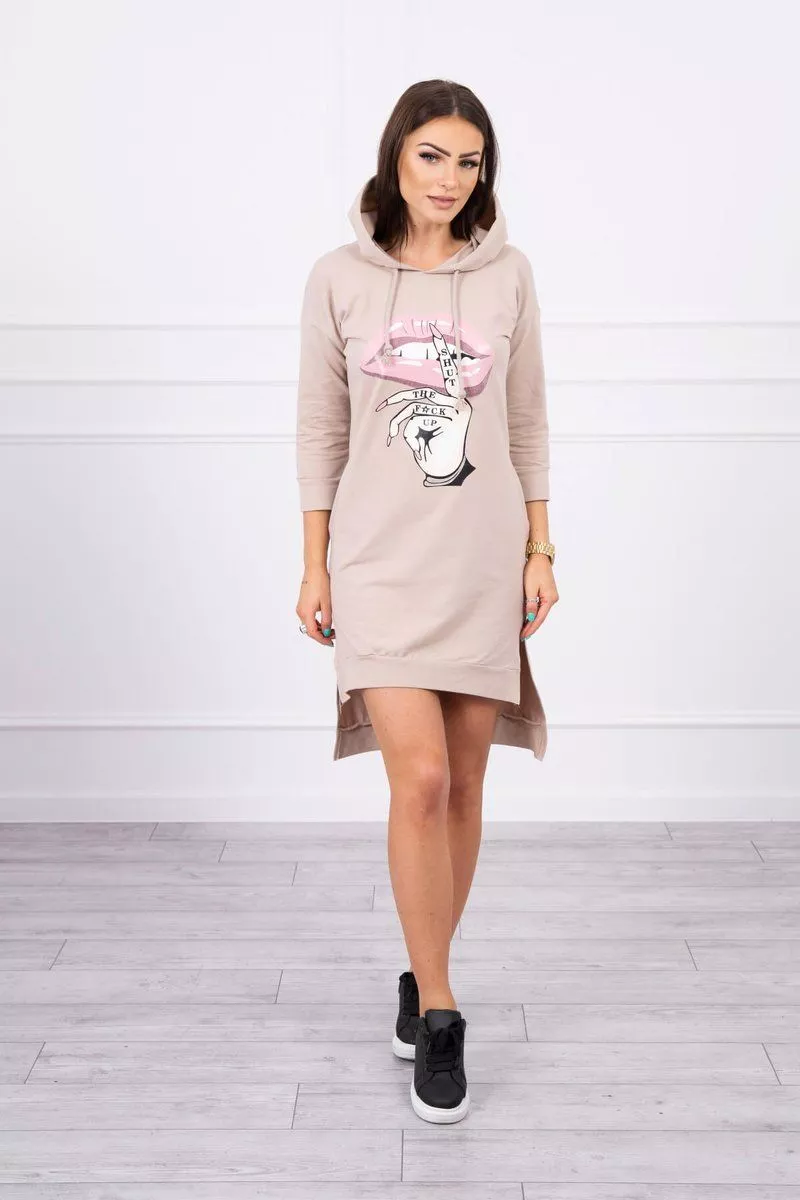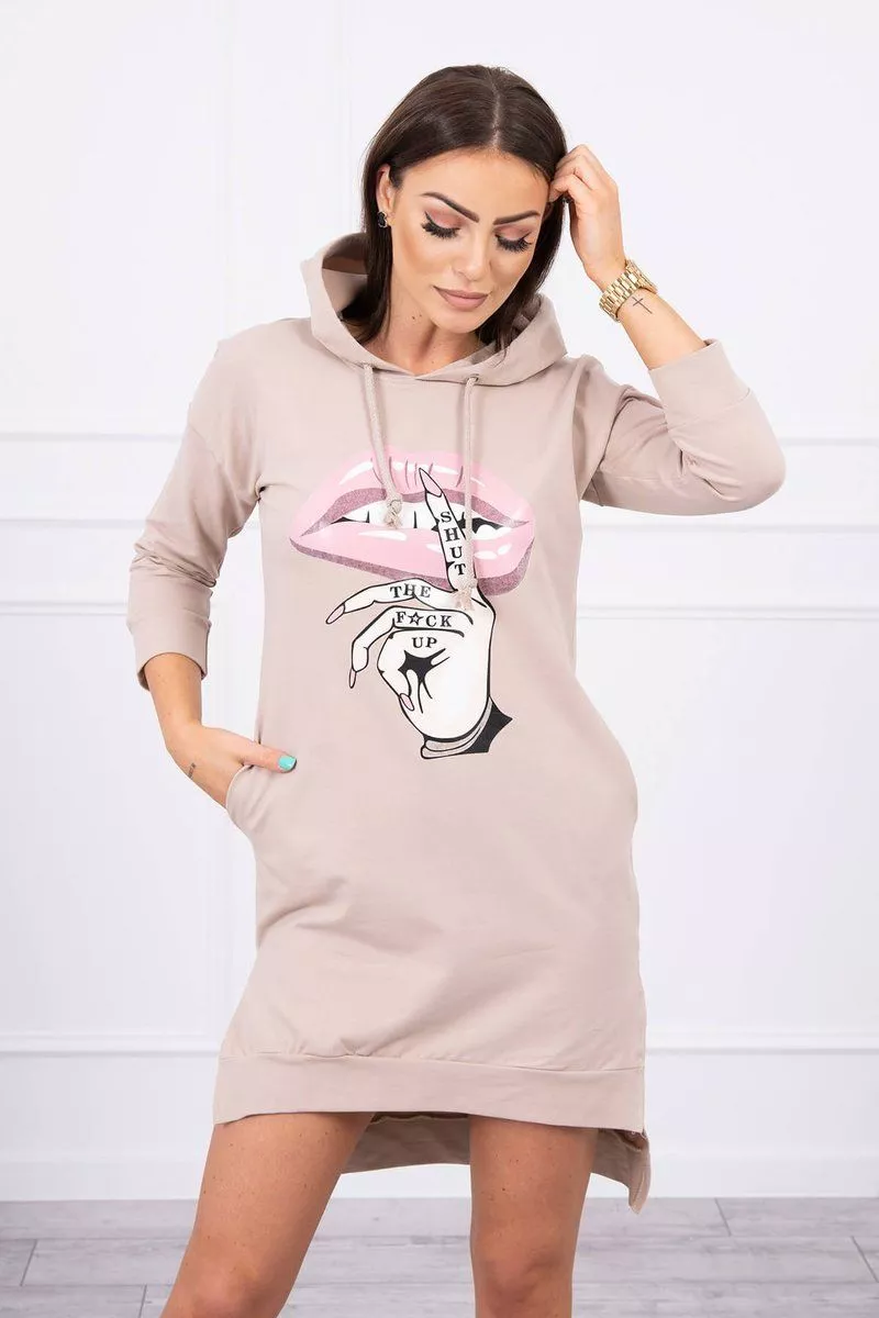 Prezentujemy PaAstwu wygodnA sukienkA. SukienkaAAz kapturem, posiada modny kolorowy nadruk. Sukienka z dAuAAszym tyAem. Bardzo ciekawa propozycja dla wszystkich PaA. Sukienka wykonana jest z wysokiej jakoAci materiaAu. Rozmiar jest uniwersalny i bAdzie odpowiedni dla PaA noszAcych rozmiar S, M lub L.