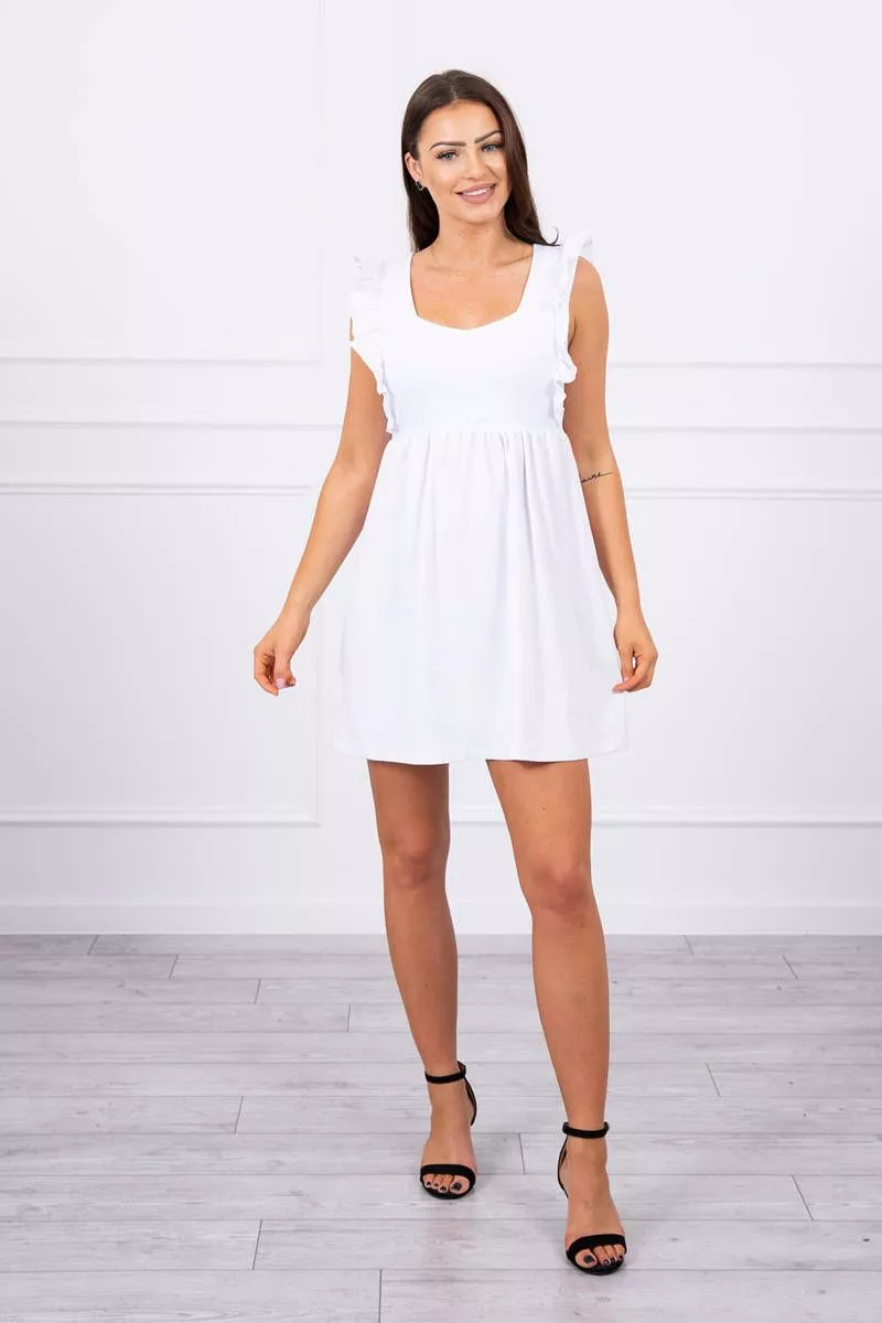 Prezentujemy PaAstwu modnA sukienkA. Sukienka po bokach posiada falbanki. Sukienka z gumkA w talii. Sukienka wykonana jest z wysokiej jakoAci materiaAu. Rozmiar jest uniwersalny i bAdzie odpowiedni dla PaA noszAcych rozmiar S, M lub L.
