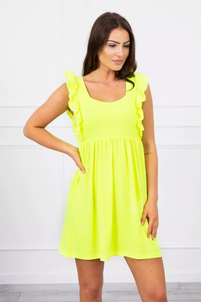 Prezentujemy PaAstwu modnA sukienkA. Sukienka po bokach posiada falbanki. Sukienka z gumkA w talii. Sukienka wykonana jest z wysokiej jakoAci materiaAu. Rozmiar jest uniwersalny i bAdzie odpowiedni dla PaA noszAcych rozmiar S, M lub L.