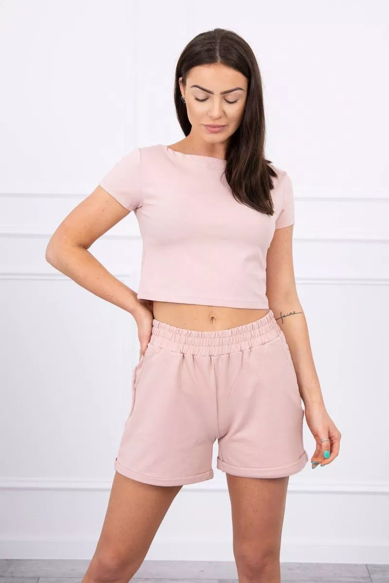 Prezentujemy PaAstwu modny komplet. Komplet skAada siA z bluzki oraz szortow. Szorty z kieszeniami z gumA w pasie i wiAzaniem. Komplet wykonany jest z wysokiej jakoAci materiaAu. Rozmiar jest uniwersalny i bAdzie odpowiedni dla PaA w rozmiarze S, M, L, XL.