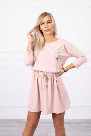 Kieszonka pokryta cekinami. Sukienka posiada wiAzanie w pasie.