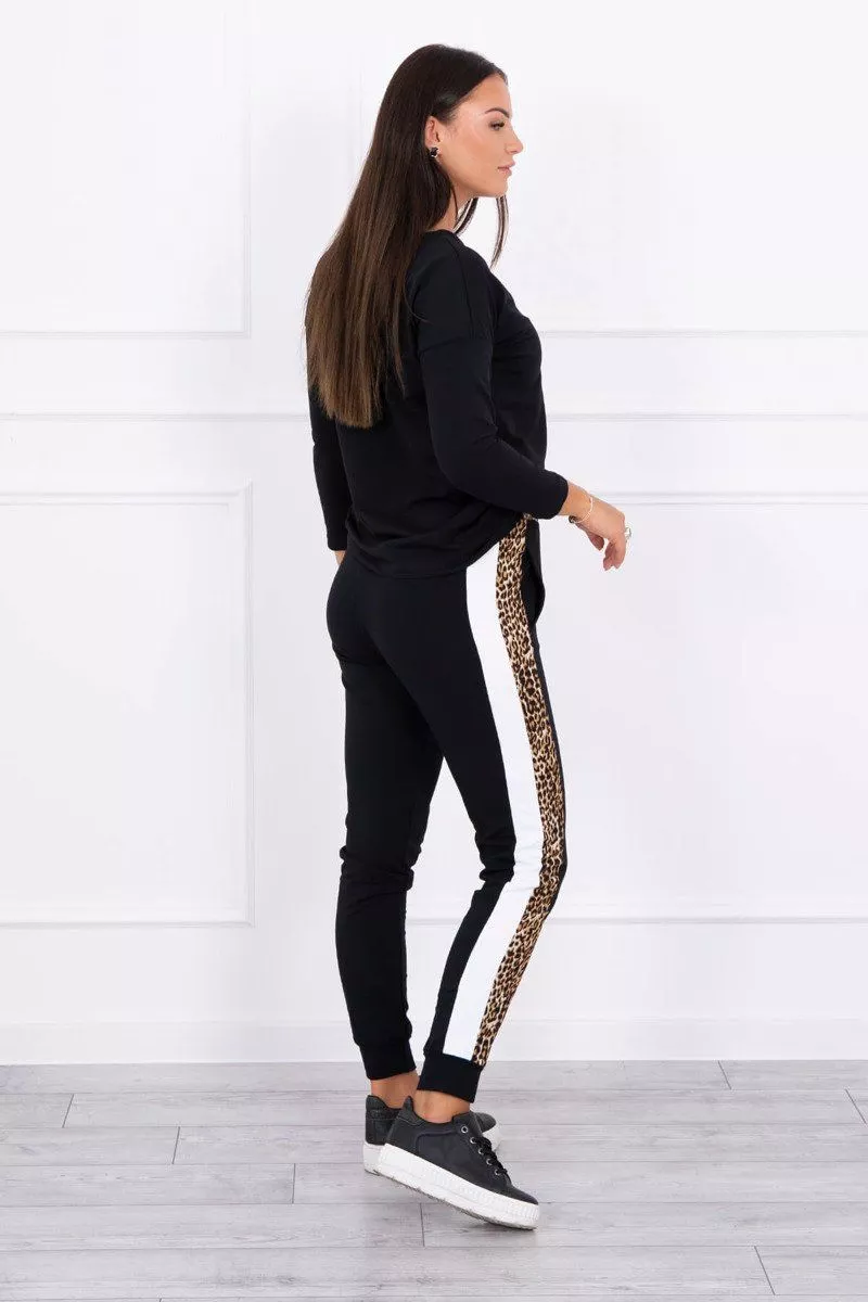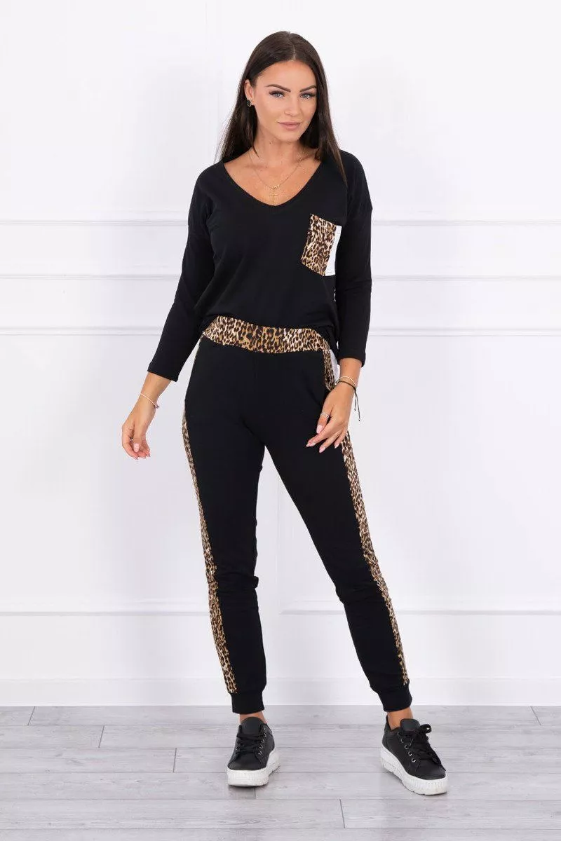 Prezentujemy PaAstwu komplet bluzki i spodni. Komplet posiada wstawki z motywem panterki. Bluzka z przodu z naszytA kieszonkA. Spodnie posiadajA kieszenie. Komplet wykonany jest z wysokiej jakoAci materiaAu. Rozmiar jest uniwersalny i bAdzie odpowiedni dla PaA noszAcych rozmiar S, M lub L.