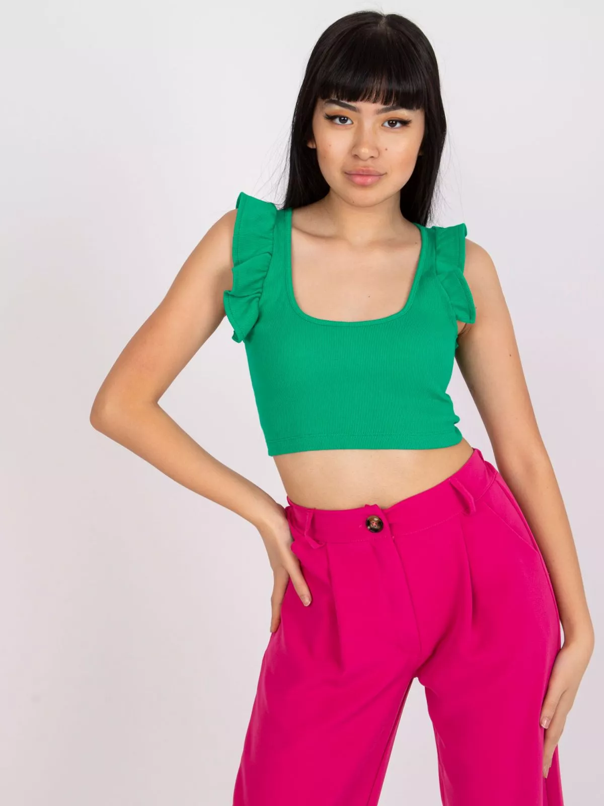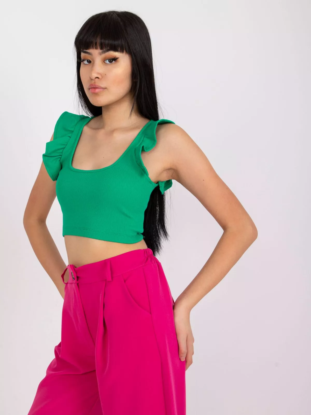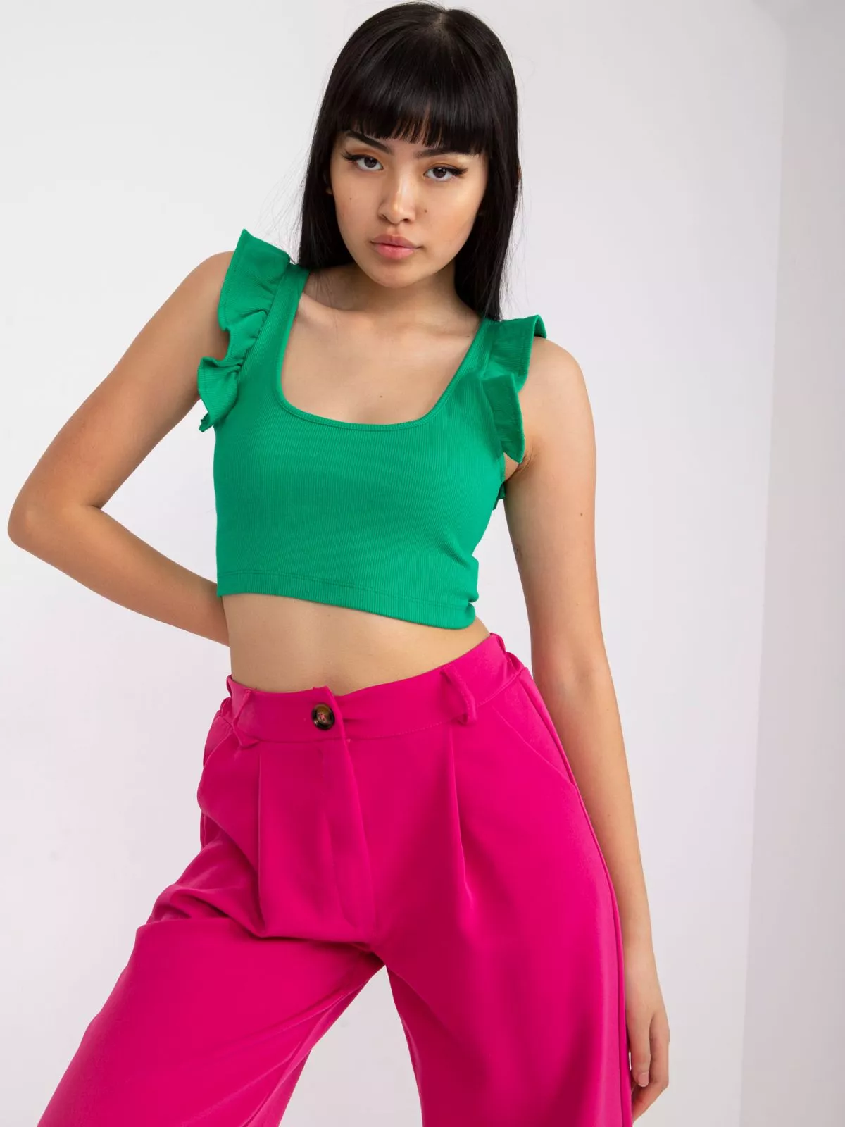 Dimensiuni top in marimea S, masurat plat: latime axila - 34 cm, lungime totala - 37 cm.