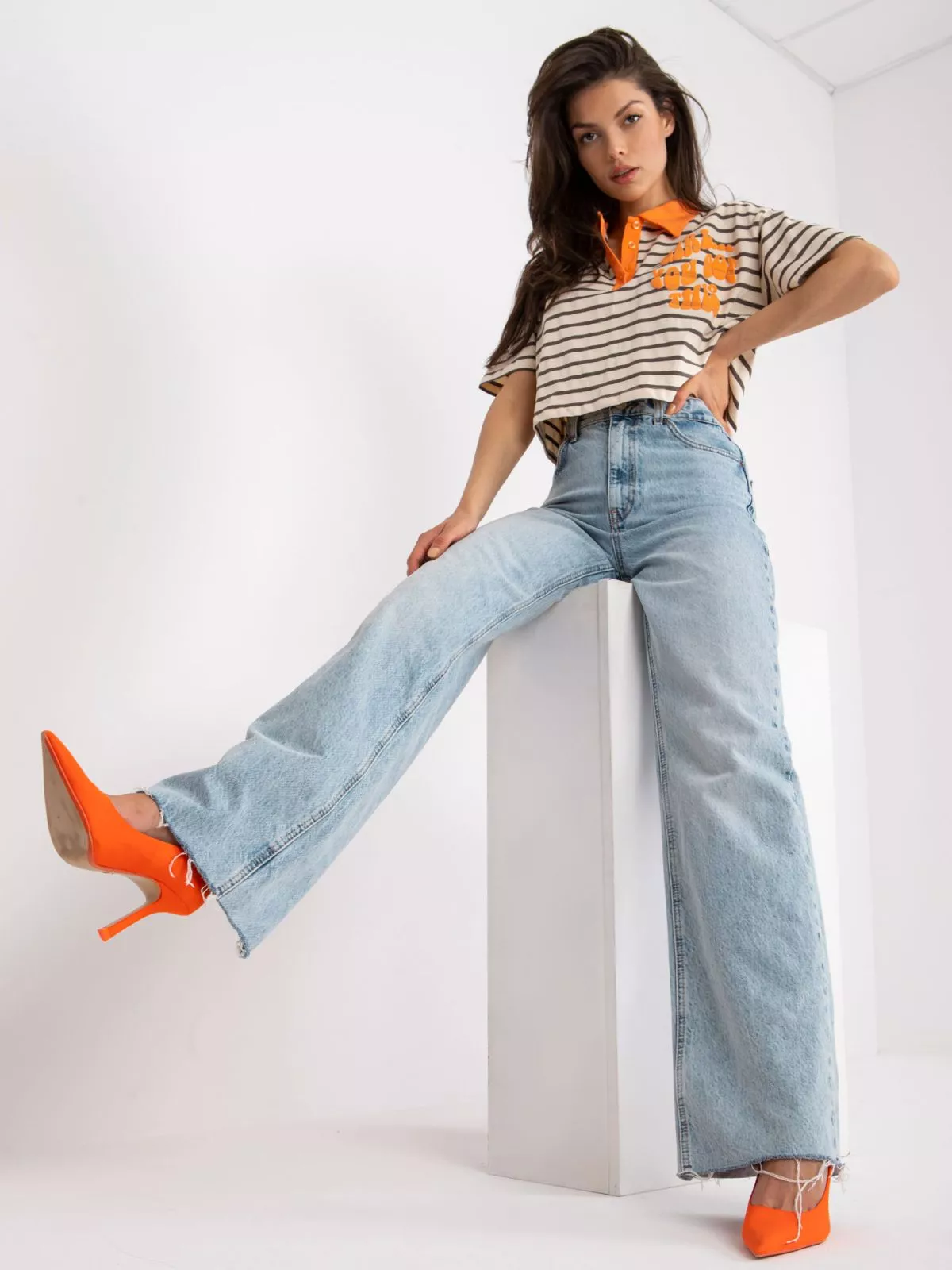 Dimensiuni model: inaltime 173 cm, bust 85 cm, talie 62 cm, solduri 95 cm.
