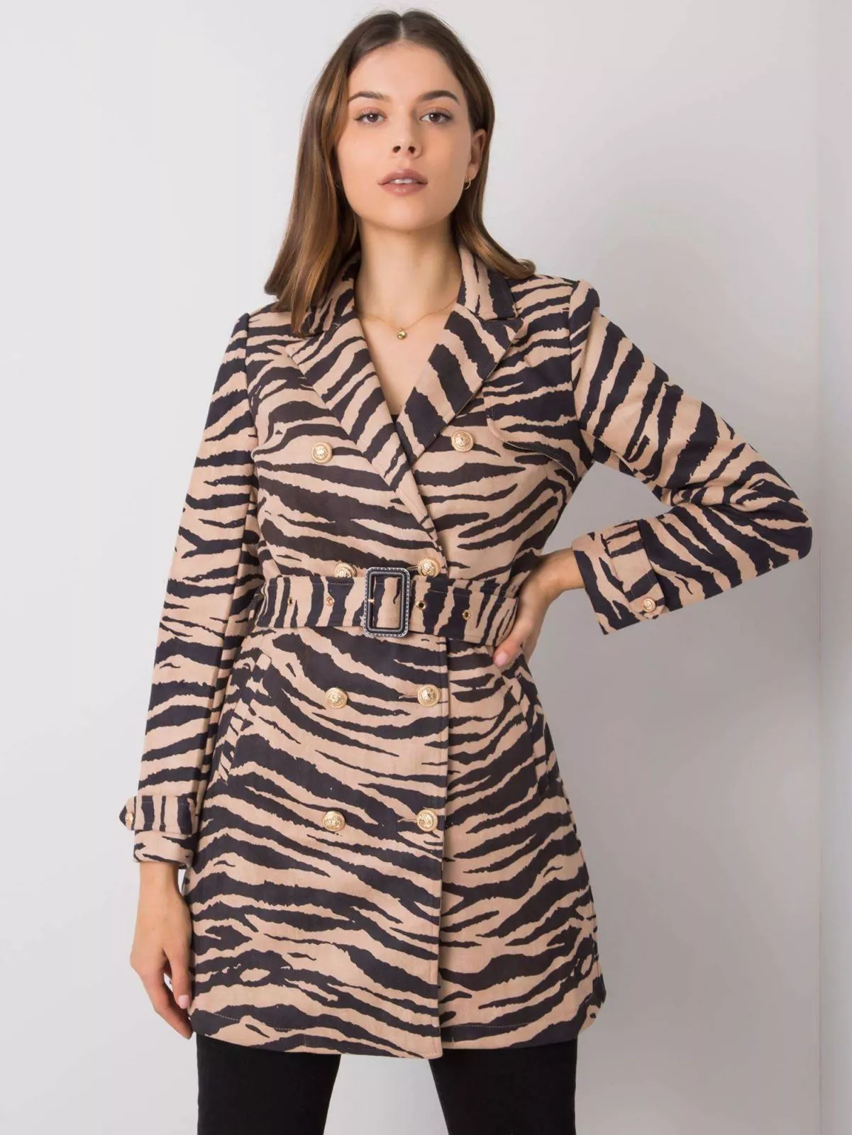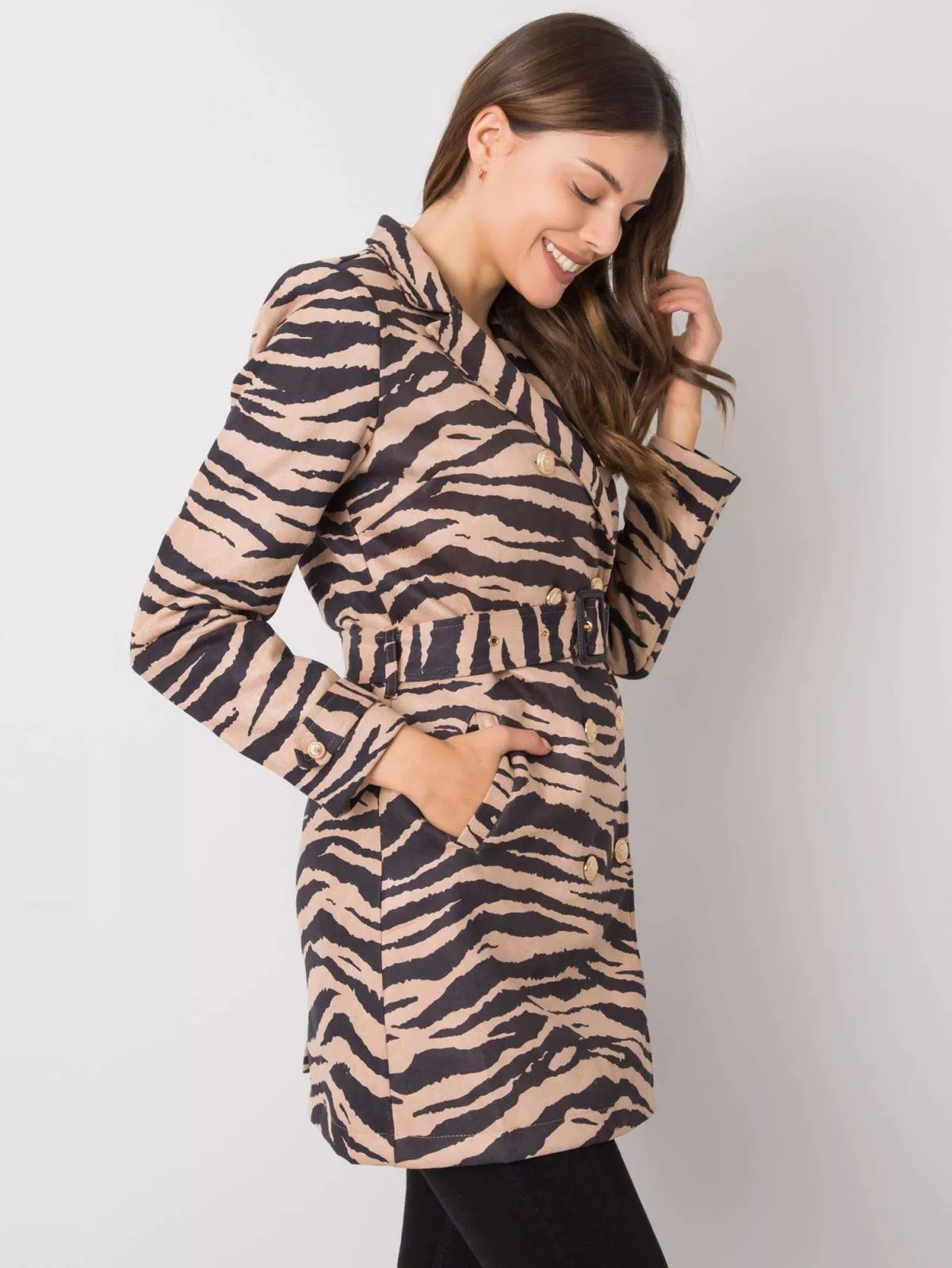 Haina bej si neagra cu motiv animal.